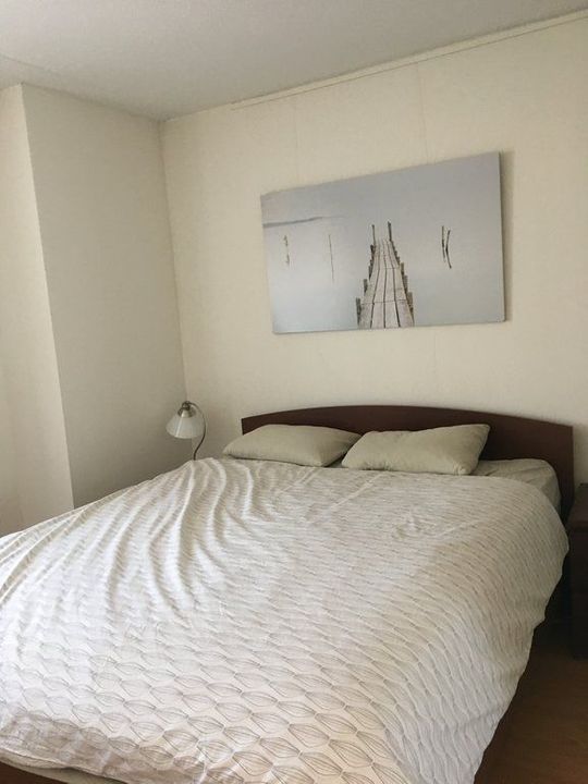 Het appartement is toegankelijk met de lift en heeft 2 slaapkamers. De grote slaapkamer is voorzien van een tweepersoonsbed met vaste garderobekast, de kleinere slaapkamer is voorzien van een bureau met stoel en logeerbed.